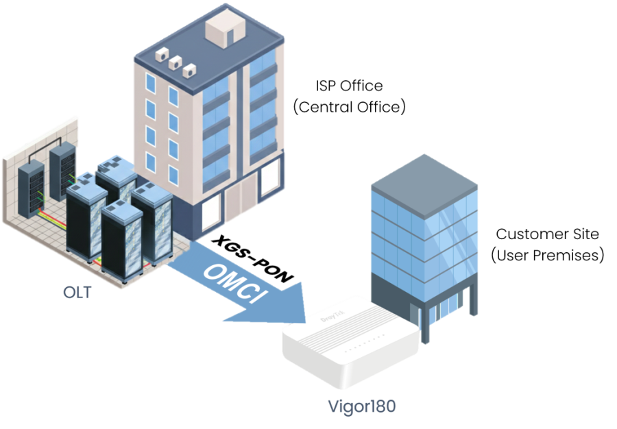 Zařízení Vigor 180 podporuje protokol OMCI (ONT Management and Control Interface) pro centralizovanou konfiguraci a správu. Navržen pro kompatibilitu s běžnými průmyslovými systémy OLT.