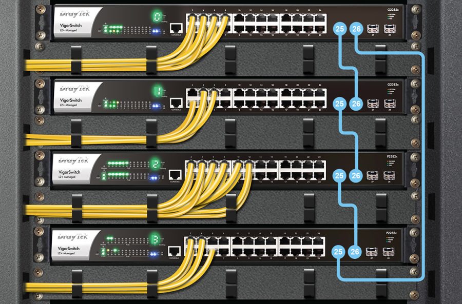 Se stackingovou podporou (od firmwaru v2.10.1) může až 4 VigorSwitch P2300xb fungovat jako jeden logický celek. To umožňuje centralizovanou správu, jednotnou konfiguraci a bezproblémový failover, díky čemuž síť zůstává silnější, chytřejší a vždy online.